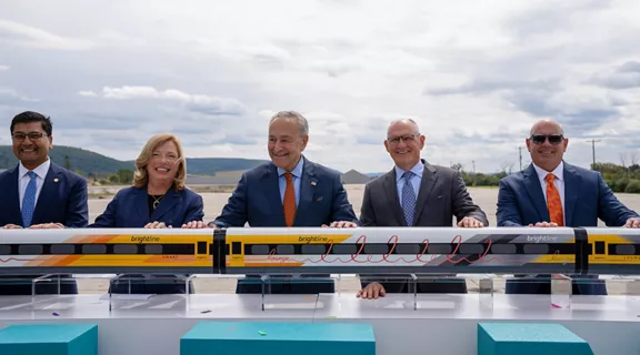 HORSEHEADS, NY (Sept. 9, 2024) – Today, Brightline West officials joined U.S. Senate Majority Leader Chuck Schumer and leadership from Siemens Mobility to announce that America’s first high-speed rail production facility will be built in New York. The Horseheads site will be dedicated to producing the nation’s first high-speed train sets, specifically, the American Pioneer 220 (AP220), which will serve Brightline West, connecting Las Vegas to Southern California. Production at the Horseheads facility is expected to begin in 2026.